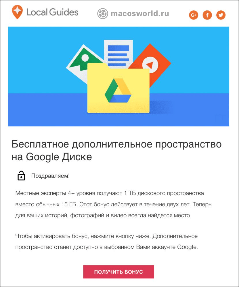 - 4 уровень (200 — 499 баллов): заветный 1 ТБ в «Google Диске», возможность стать героем публикаций на официальных страницах Google, ежегодные подарки за помощь в развитии «Google Карт»;