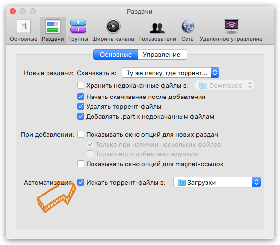 Кстати, не забудьте научить Transmission удалять .tоrrent-файлы после добавления, это избавит вас от лишнего мусора в папке Загрузки.