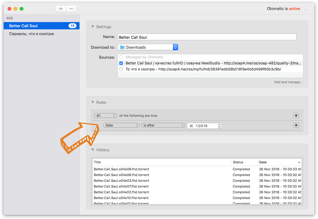Для примера давайте создадим еще один фильтр, который обрабатывает только один сериал — Better Call Soul. Причем фильтровать эпизоды можно не только по дате, но и по названию.