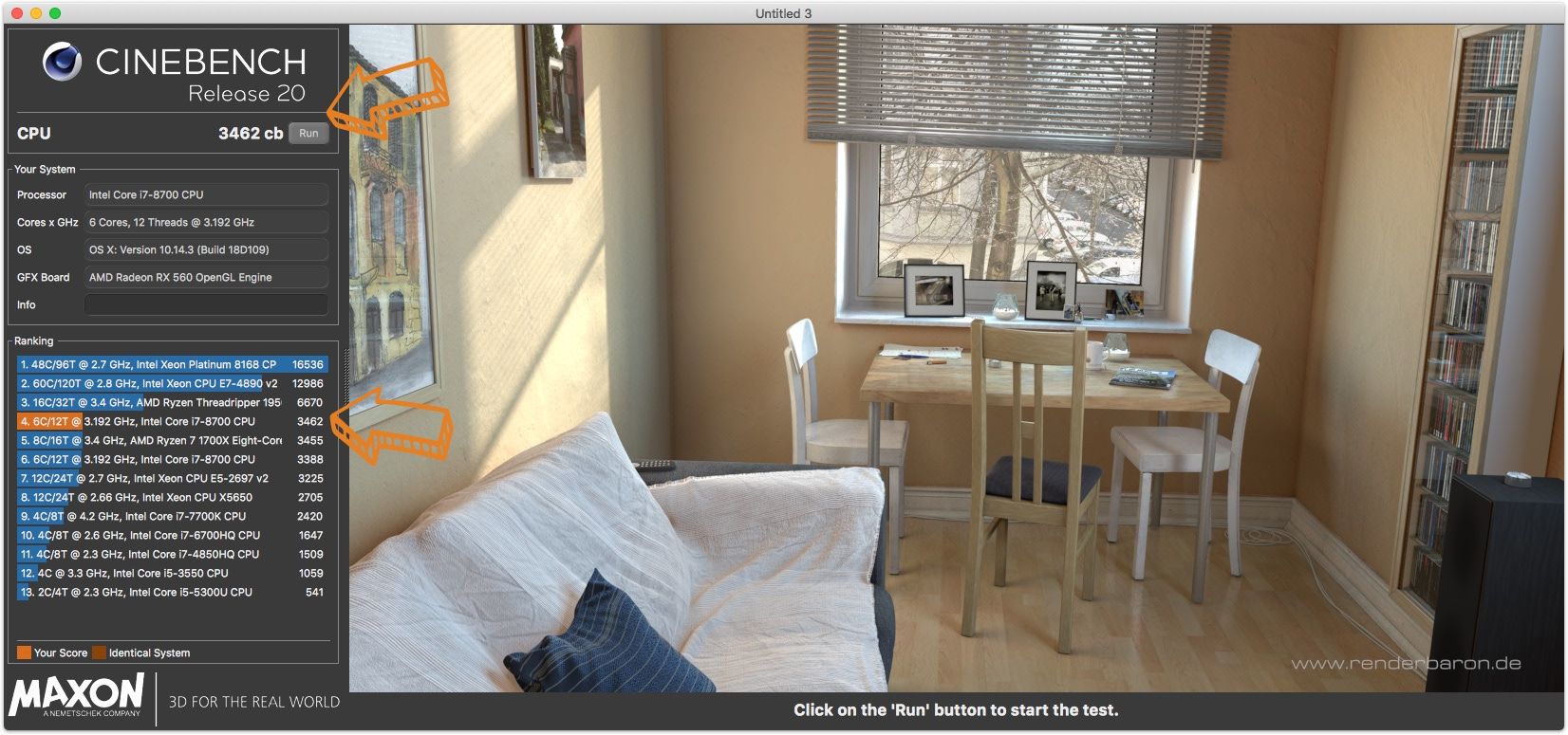 Cinabench подойдет, чтобы сравнивать между собой производительность процессоров нескольких Mac. Особенно, если вы не хотите ждать по 20+ минут, как в случае с Blender.