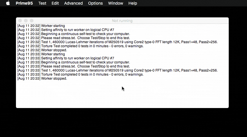 Интерфейс Prime95 не особо дружелюбен, к тому же для нормально тестирования надо знать, что и как нужно запустить. Если у вас обычный Mac, а не Хакинтош, то лучше используйте Blender.