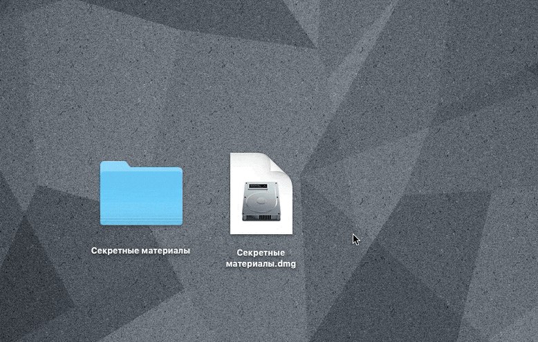 - Через несколько секунд зашифрованная папка с расширением .dmg появится рядом с оригинальной папкой. Двойной клик на ней откроет окошко ввода вашего пароля. А после ввода смонтирует папку на Рабочий стол в виде внешнего накопителя.