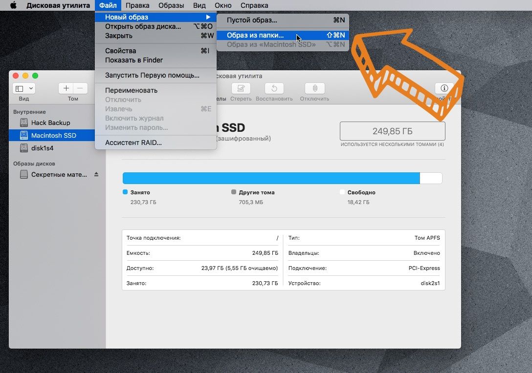 Файл ▸ Новый образ ▸ Образ из папки...и выберете папку, на которую хотите поставить пароль;
