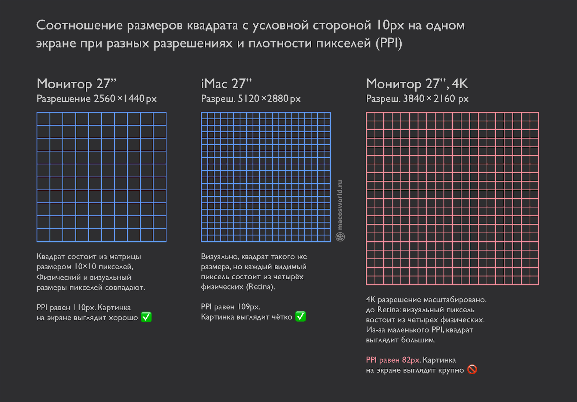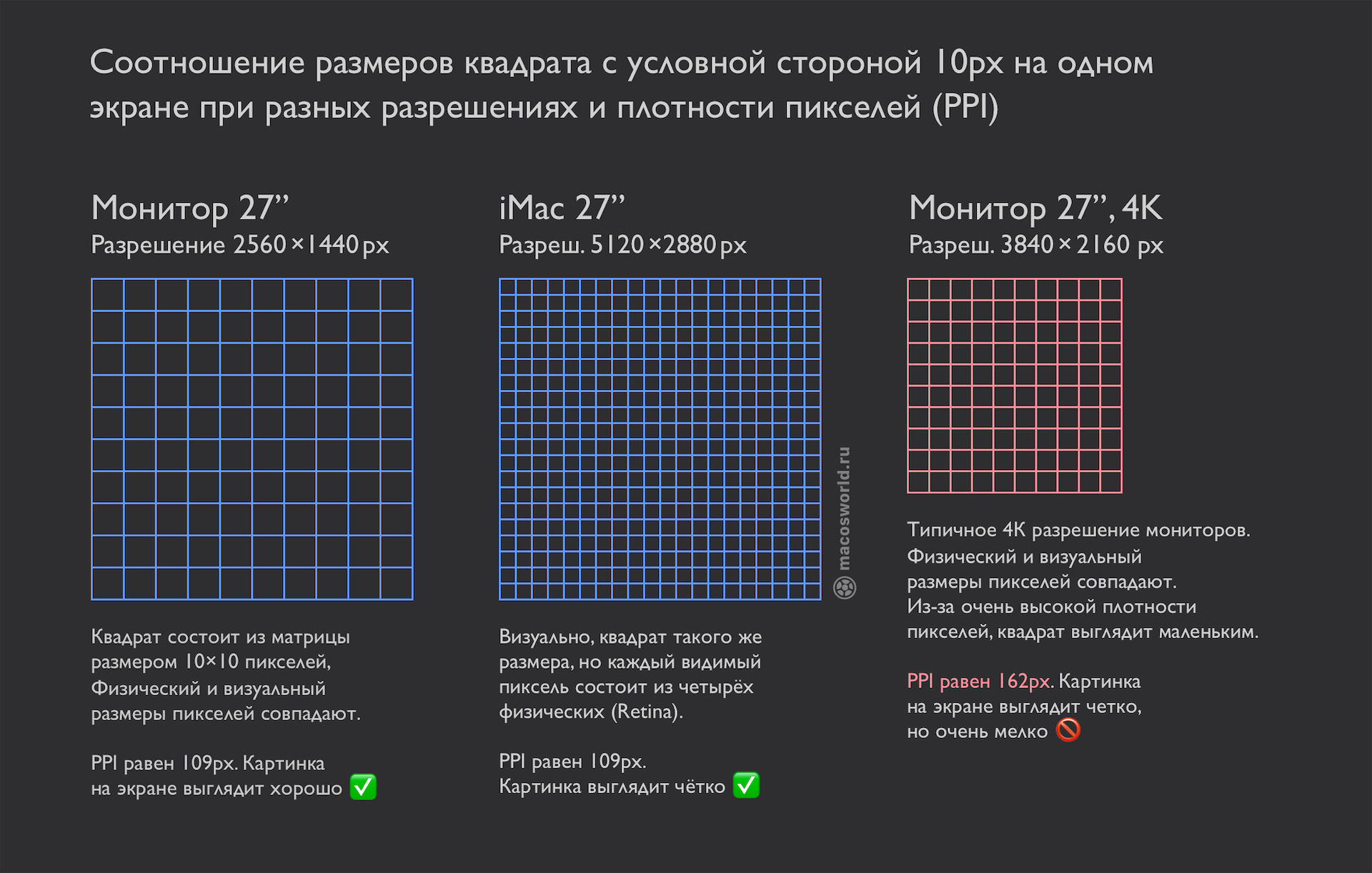 ΠΠ°ΠΏΡΠΈΠΌΠ΅Ρ, Π² MacBook Pro 13β³ ΠΈ iMac 27β³ Π²ΠΈΠ΄ΠΈΠΌΠ°Ρ ΠΏΠ»ΠΎΡΠ½ΠΎΡΡΡ ΠΏΠΈΠΊΡΠ΅Π»Π΅ΠΉ ΡΠ°Π²Π½Π° 109 PPI. ΠΠΎΡΡΠΎΠΌΡ, Π΅ΡΠ»ΠΈ Π²Ρ ΠΏΠ΅ΡΠ΅ΡΡΠ΄Π΅ΡΠ΅ Ρ MacBook Π½Π° iMac, ΡΠΎ Π±ΠΎΠ»ΡΡΠΎΠΉ ΡΠ°Π·Π½ΠΈΡΡ Π² ΡΠ°Π·ΠΌΠ΅ΡΠ°Ρ ΠΈΠ·ΠΎΠ±ΡΠ°ΠΆΠ΅Π½ΠΈΡ Π½Π΅ Π·Π°ΠΌΠ΅ΡΠΈΡΠ΅.
