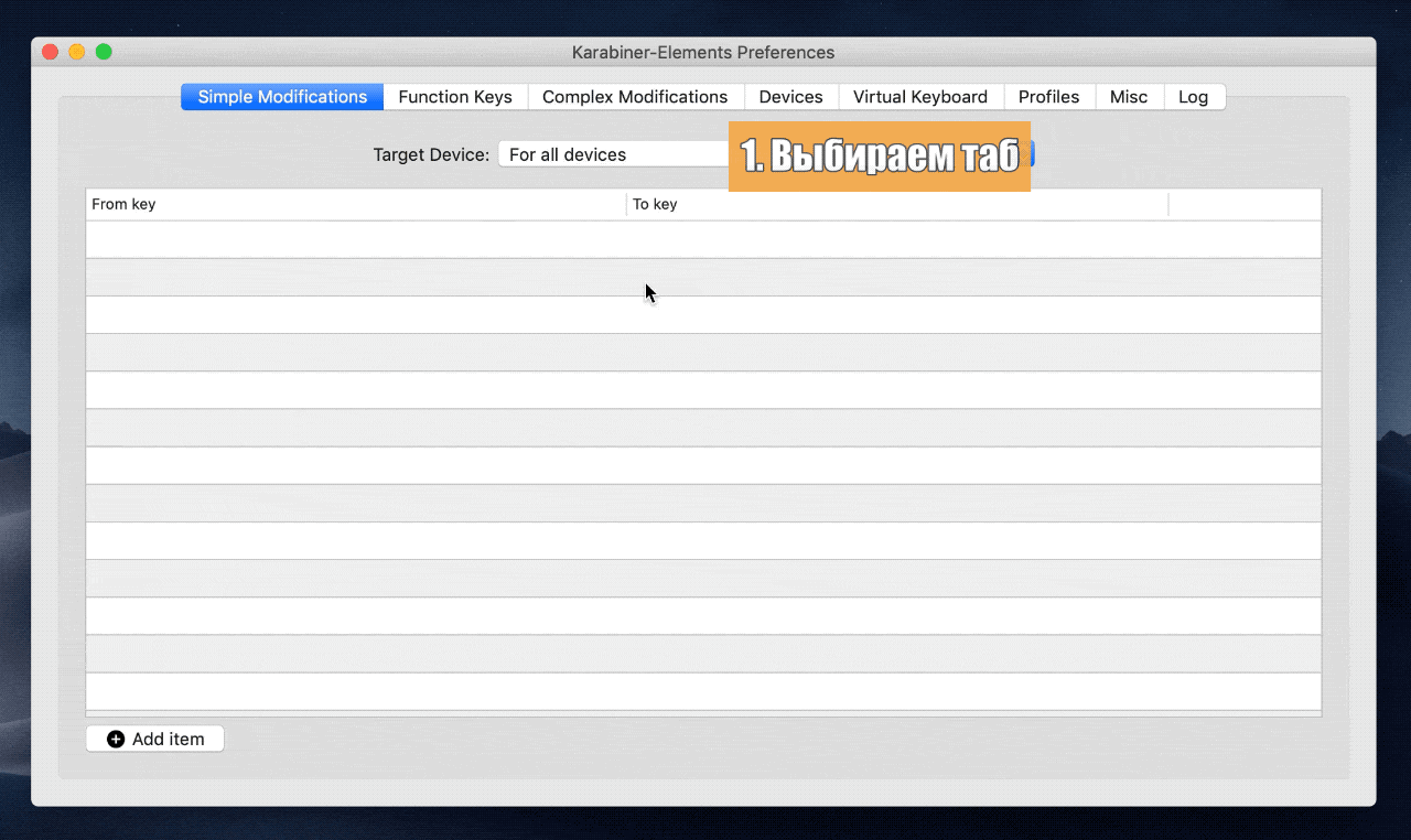 - Перейдите во вкладку Complex Modifications и нажмите кнопку Add rule;