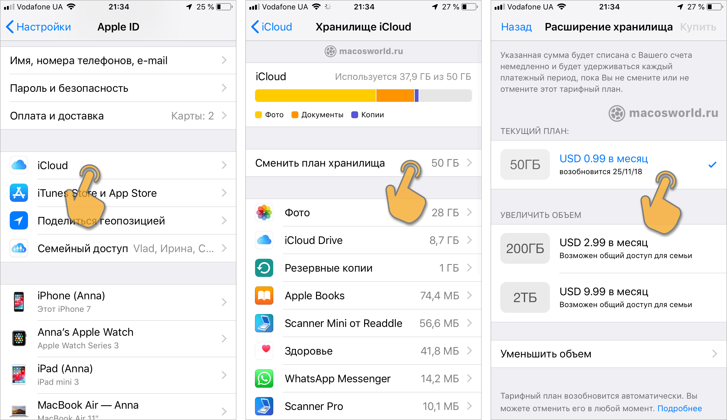 - Если вы купите больше места в iCloud, то сможете делать в него резервные копии iPhone и других устройств.