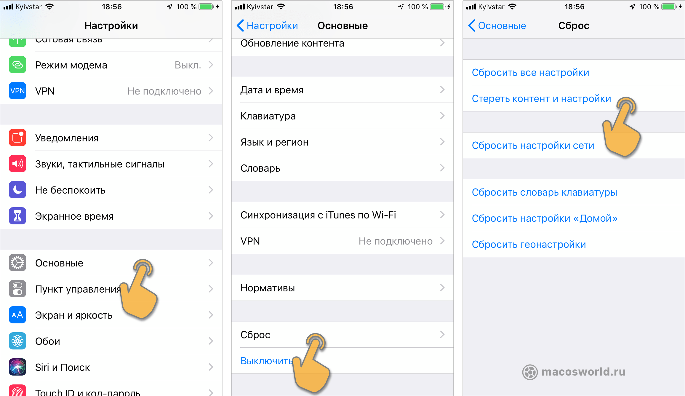 👉 Настройки▸Основные▸Стереть контент и настройки
