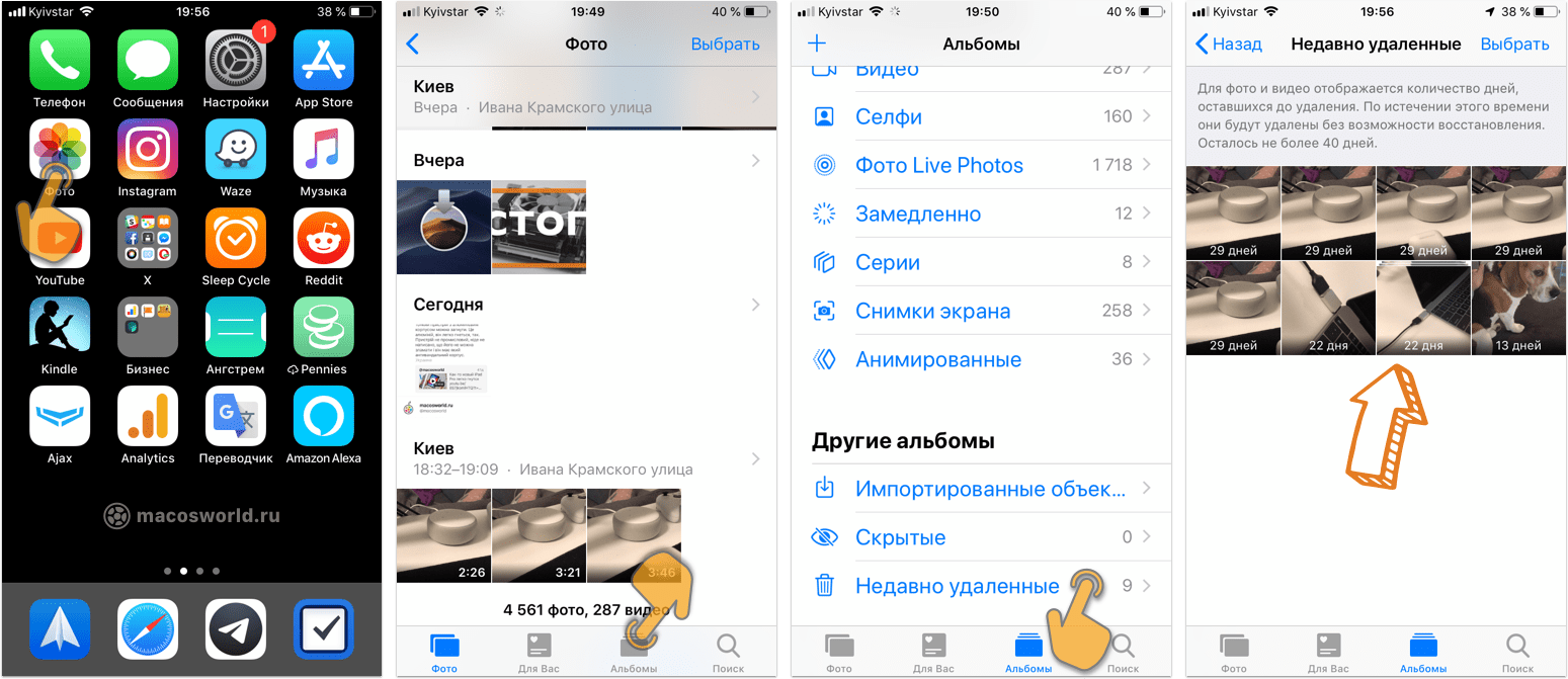 👉 Фото▸Альбомы▸Недавно удаленные
