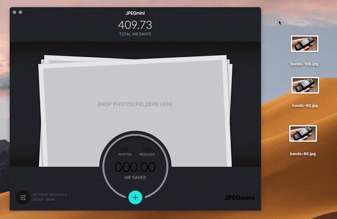 Нужно просто перетянуть снимок или группу снимков на главное окно JPEGmini и через пару секунд исходные снимки будут оптимизированы.