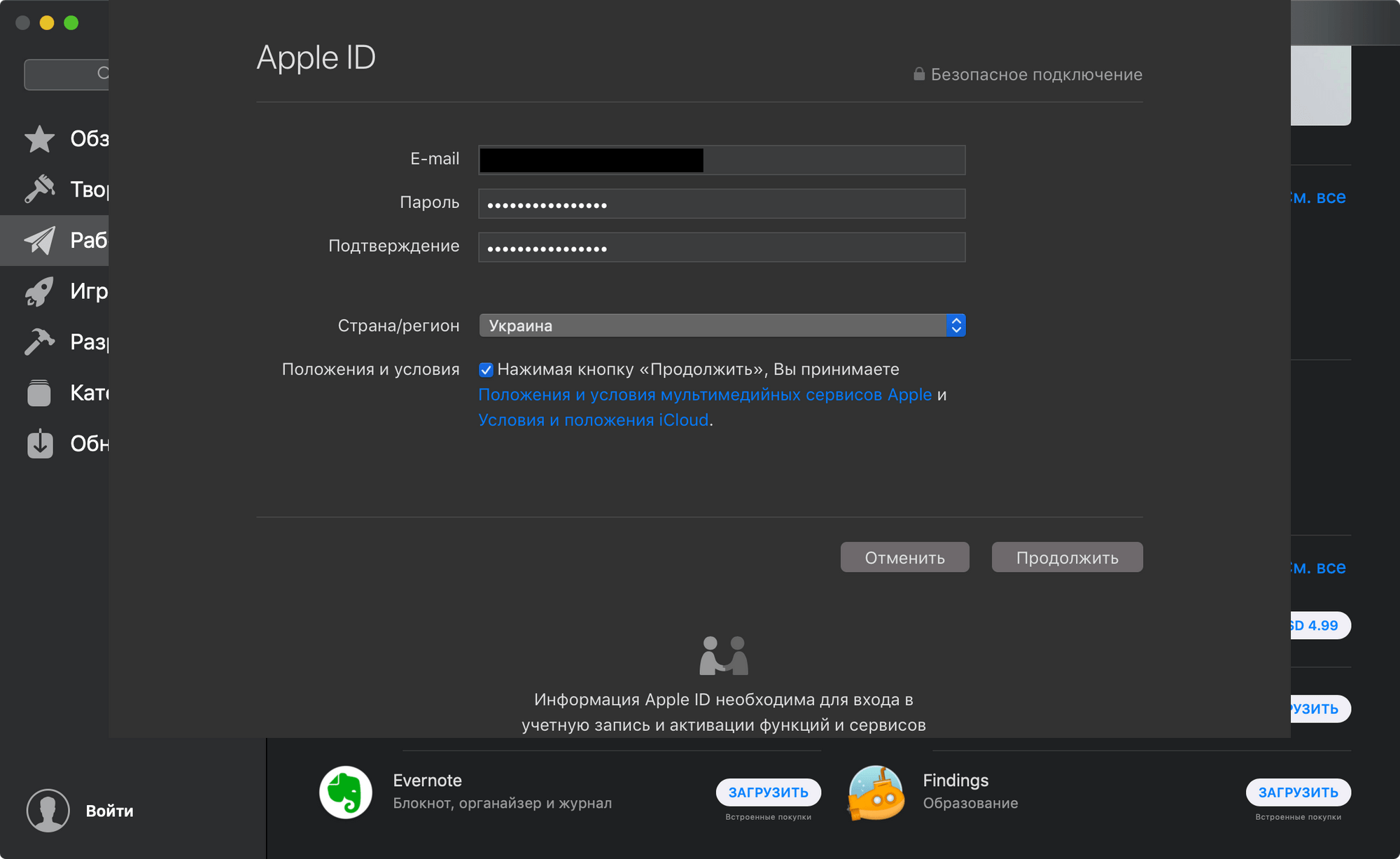 Принцип создания Apple ID без карты через компьютер абсолютно такой же, только регистрация происходит через «настольный» App Store.