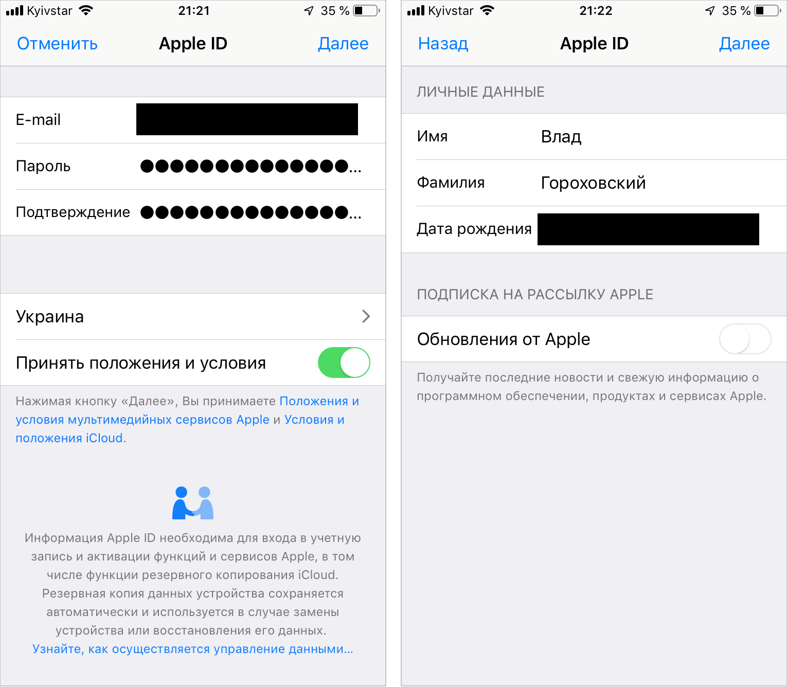 - Заполните все необходимые поля. Ваш электронный адрес и будет вашим Apple ID;