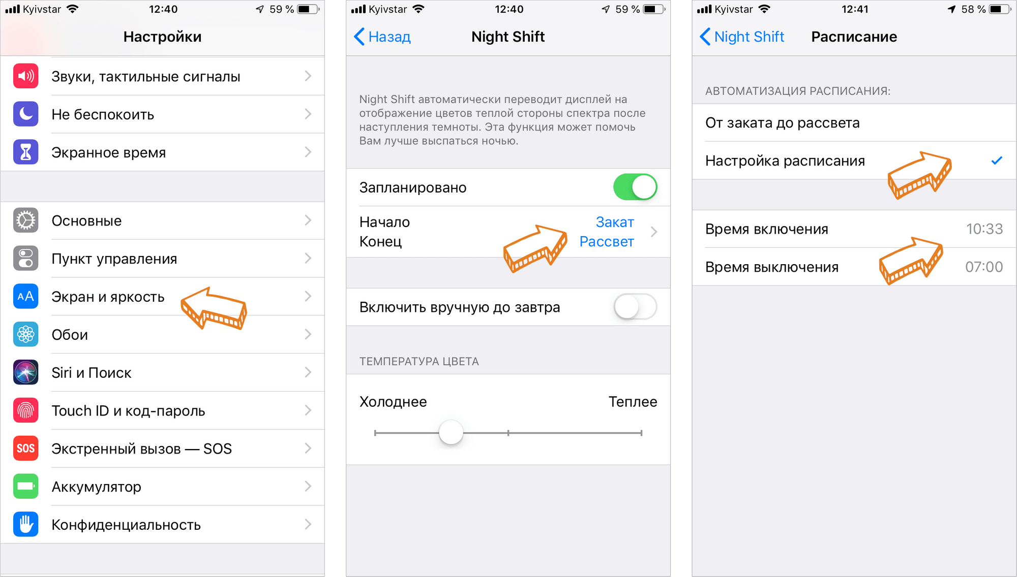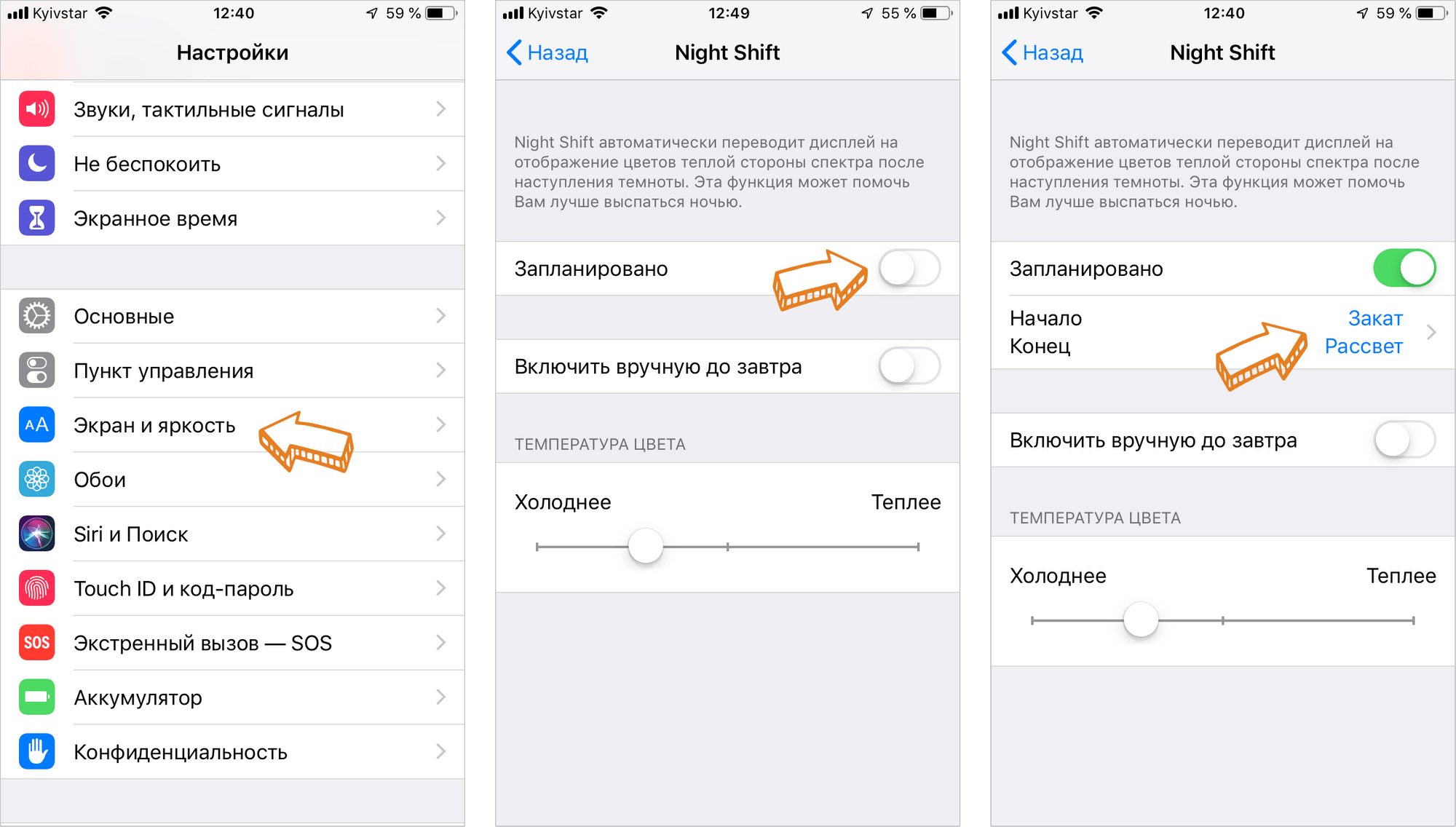 Как изменить цветовую температуру Night Shift