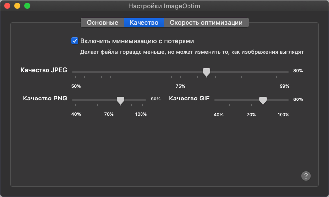 Никаких мучений с настройкой модулей, как у ImageOptim здесь нет. Поставил программу и пользуешься. Только ради этой простоты уже стоит перейти на Optimage.