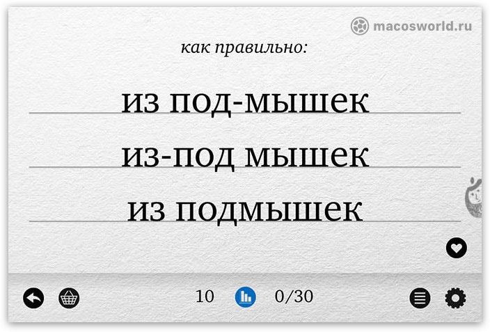 120 карточек с самыми обычными русскими словами, которые многие продолжают писать неправильно, например: регистрация, вдогонку, будущий, подшипник и.п. Если вы не заканчивали филологический факультет, то наверняка испытываете с ними затруднения. В этом легко убедиться, если поработать с Орфографом без любимого спелл-чекера.