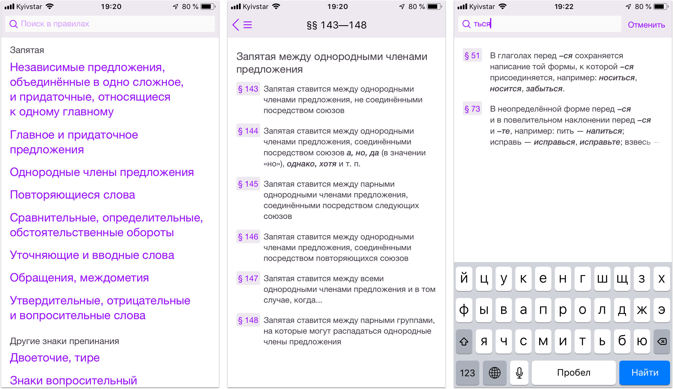 Свод правил русского языка, который действует с 1956 года и по сей день. Все правила когда-то красиво оформил Илья Бирман на сайте therules.ru, а это — не что иное, как его версия для iPhone.