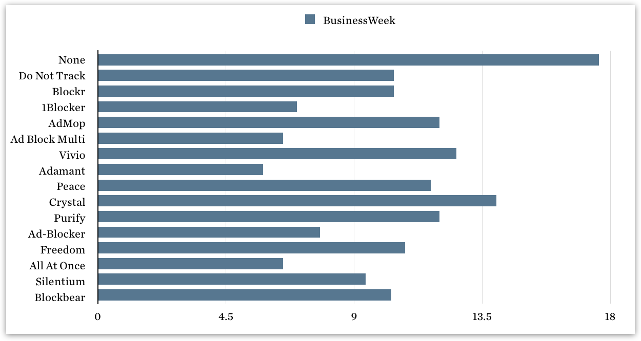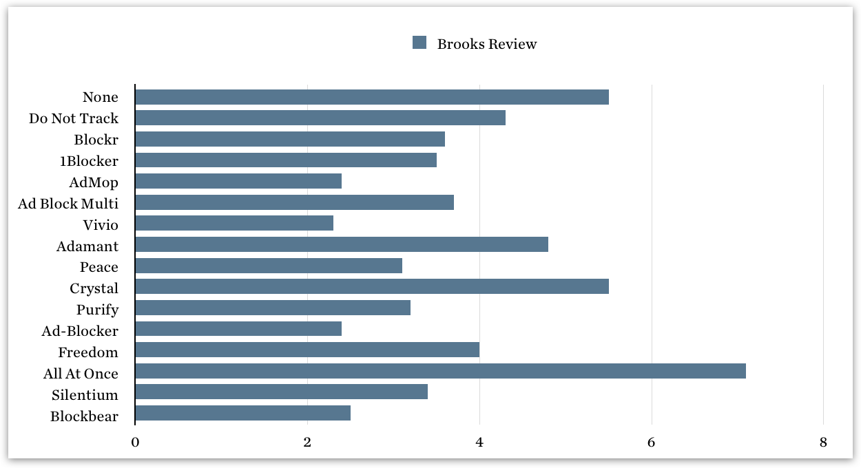 Объективно сравнить блокировщики невозможно, а результаты индивидуальные и зависят от посещаемых вами сайтов. На трафик в мессенджерах, Instagram и прочих сервисах блокировщики никак не повлияют. Только web-трафик. Так какой лучше? Нашелся один отчаянный парень, который «натравил» 15 блокировщиков на 8 зарубежных сайтов и получил следующий результаты. На каждом из графиков — время загрузки сайта в секундах (почему он не отсортировал по скорости, я не знаю).