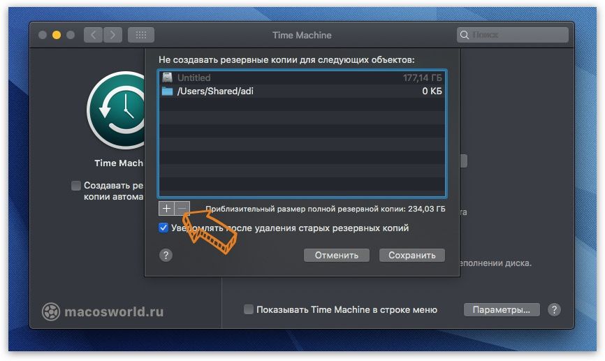Как ограничить размер копии Time Machine